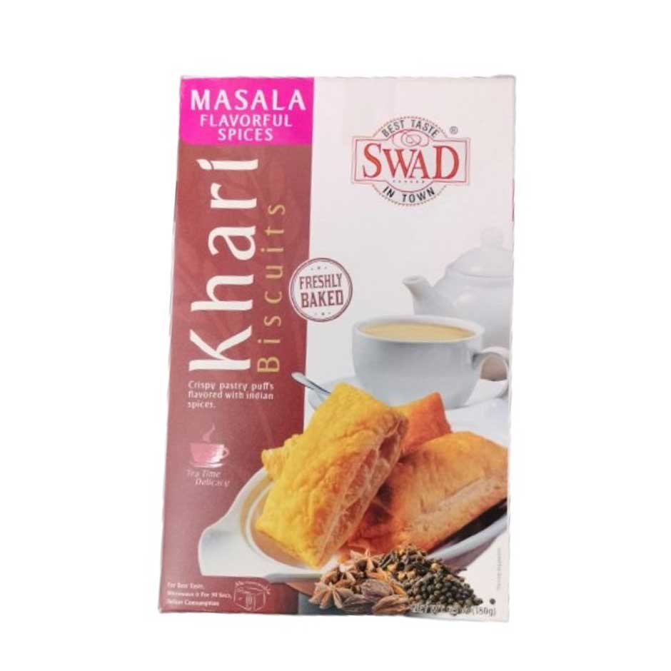 Swad Khari Biscuits (180 g) are light, flaky, and crispy puff pastries made from refined flour and baked to perfection.